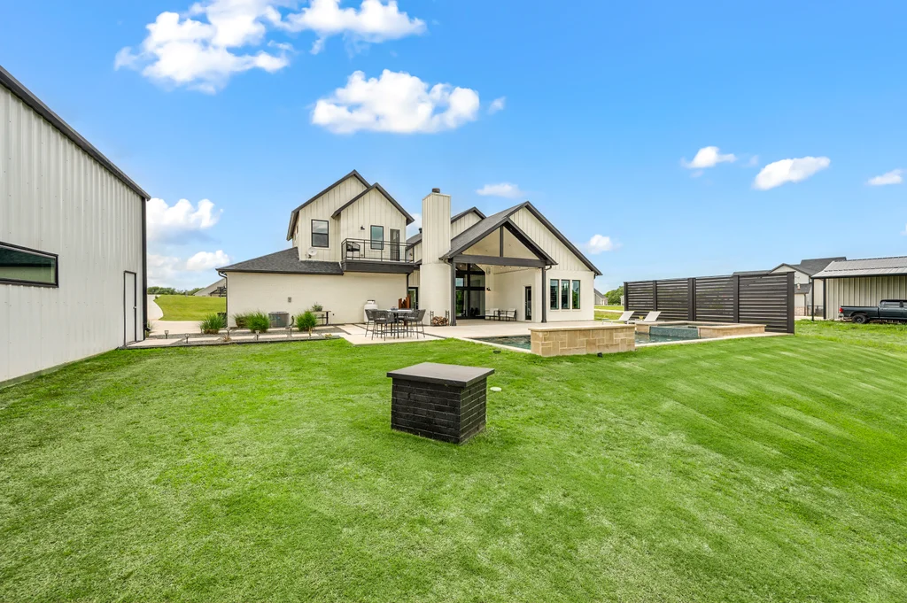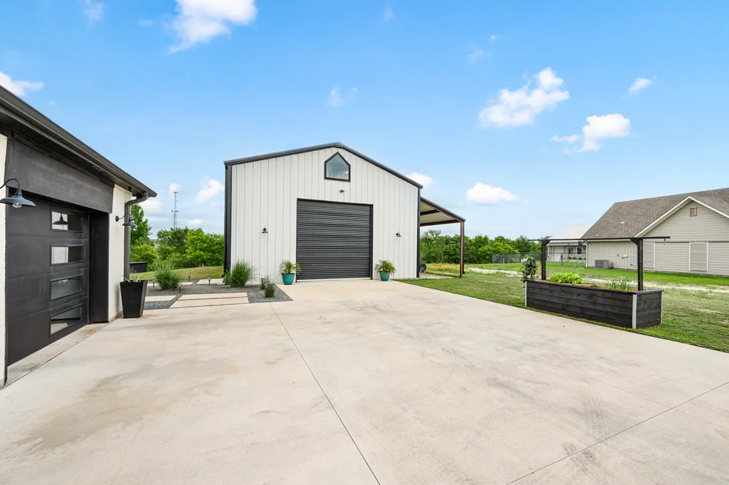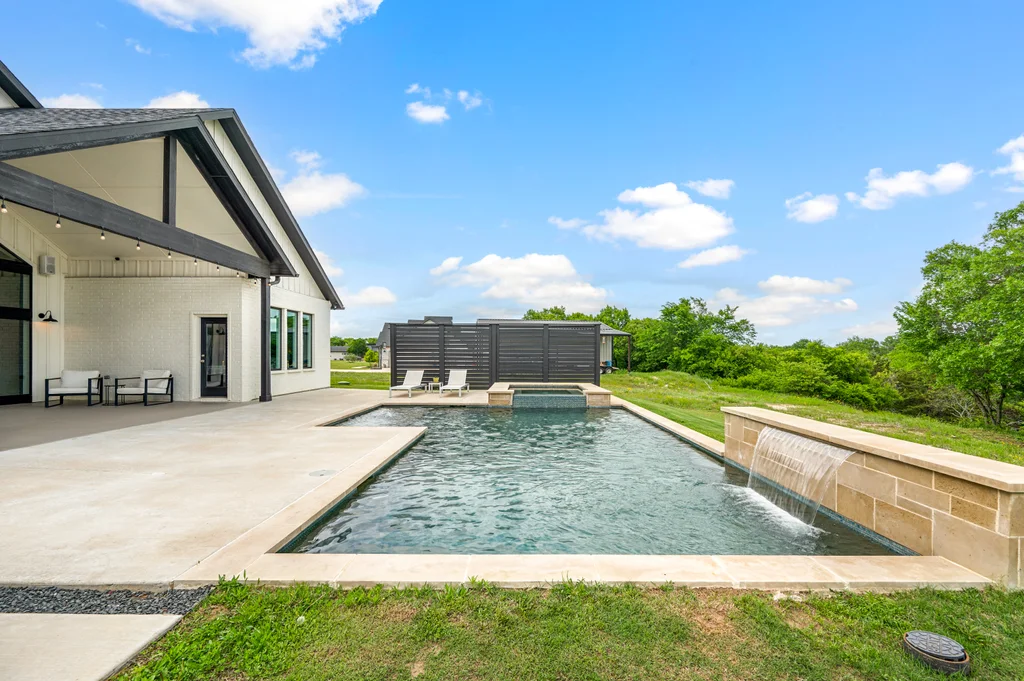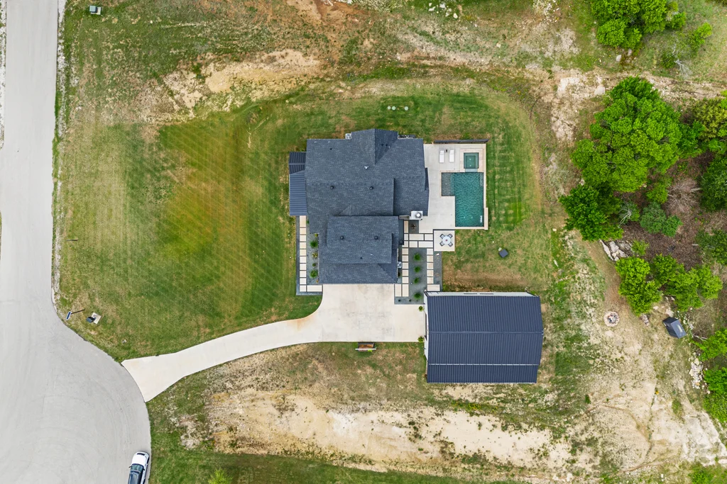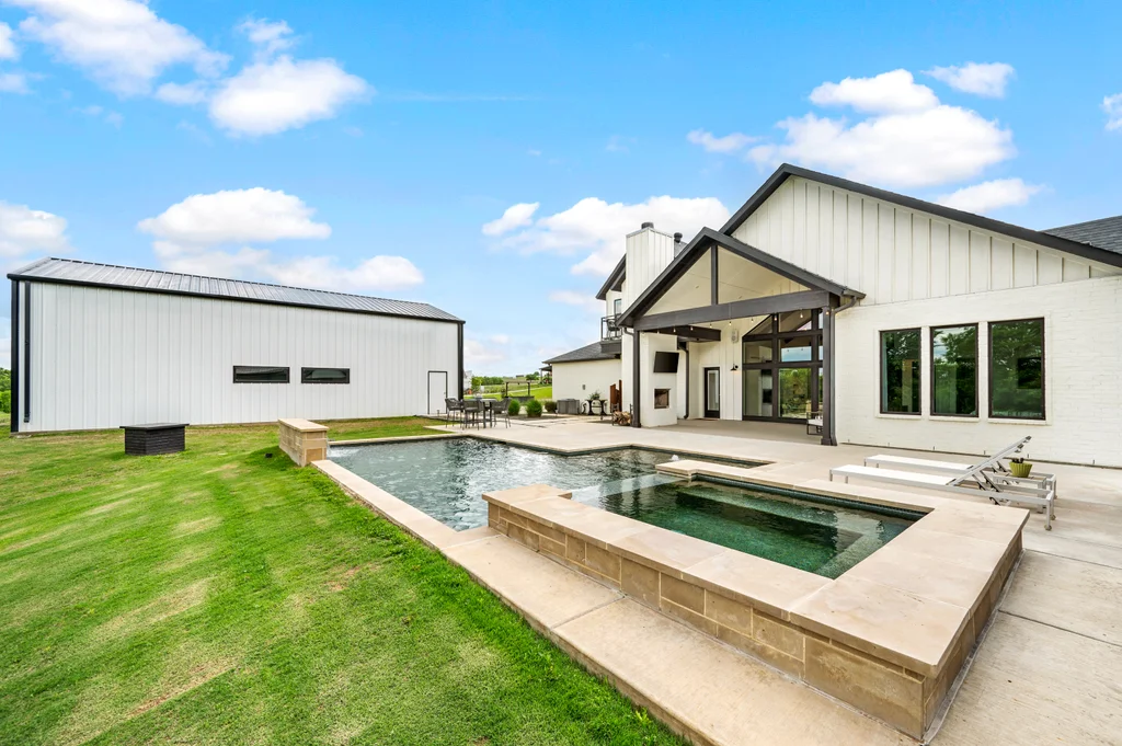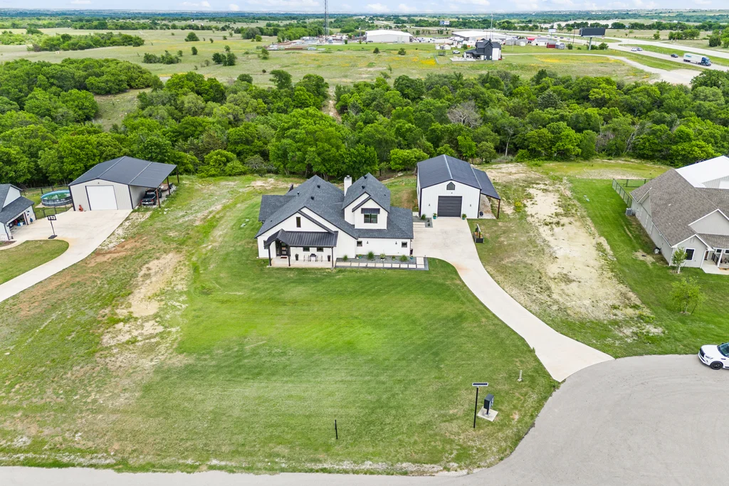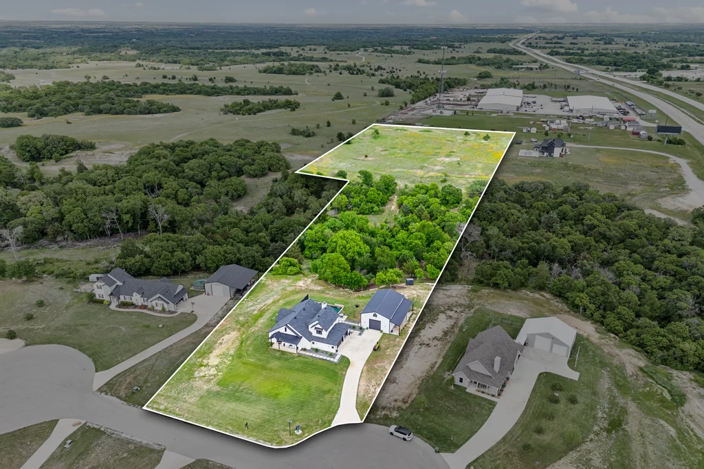 If you’re craving rolling terrain instead of flat, forgettable Texas land, this is your property! A rare mix of elevation & usable back pasture area (est. 4 acres) creates the perfect backdrop for hiking, ATV riding, hunting, or simply roaming beneath towering mature trees. A seasonal creek winds through the lower part of the property, adding character & natural beauty. All this privacy, with easy freeway access to anywhere in DFW! Built in 2020 & on 7.354 acres (6.354 AG EXEMPT for low taxes), this custom home delivers freedom with NO HOA, 2 water wells, 2 propane systems, water softener, & thoughtful floorplan. Inside, rustic sophistication meets modern design w-soaring, wood-beamed ceilings, statement accent walls, designer lighting, custom barn doors, marble countertops & undercabinet lighting create a curated, high-end aesthetic. The kitchen commands attention w-a dramatic waterfall island, stainless farm sink, stainless appliances, custom backsplash, abundant cabinetry & a HUGE walk-in pantry! The expansive family room flows seamlessly from the kitchen! This area also includes an office nook & a sleek dry bar w-undercounter fridge. The downstairs owner’s retreat has 10’ ceilings, private patio access, a spa-inspired ensuite w-6’ soaking tub, dual-entry shower w-dual heads, & a MASSIVE closet w-DIRECT laundry room access! The laundry room continues the luxury w-Quartz counters, a sink, custom cabinetry & undercabinet lighting. Upstairs offers two bedrooms, one currently styled as an open art studio. Seller will convert to an enclosed 3rd bedroom if desired. Step outside to your resort moment: POOL & HOT TUB w-COVERED 14x19 patio & fireplace! BONUS: A covered 6’x25’ front patio! The 40’x50’ INSULATED shop features 220V electric, two 12’x12’ roll-up doors, room for 6+ vehicles & a 10’x50’ lean-to! Plus the home has an oversized 3-car garage! This isn’t just acreage. It’s atmosphere. It’s freedom. It’s Texas done right. Hunting welcome!