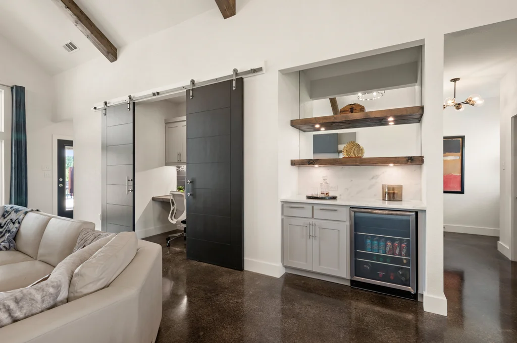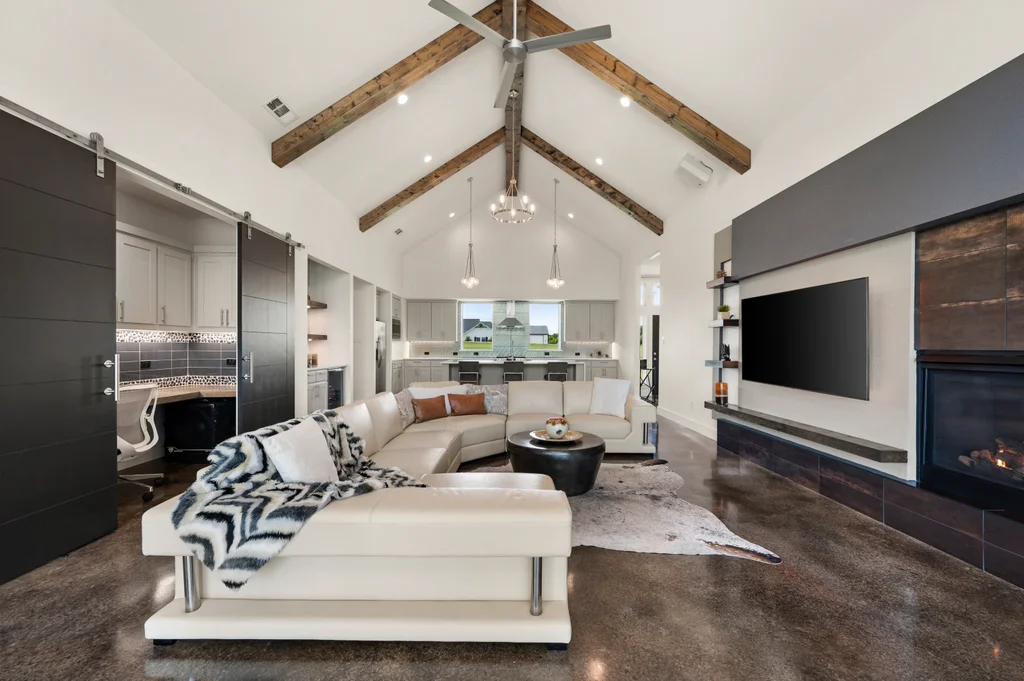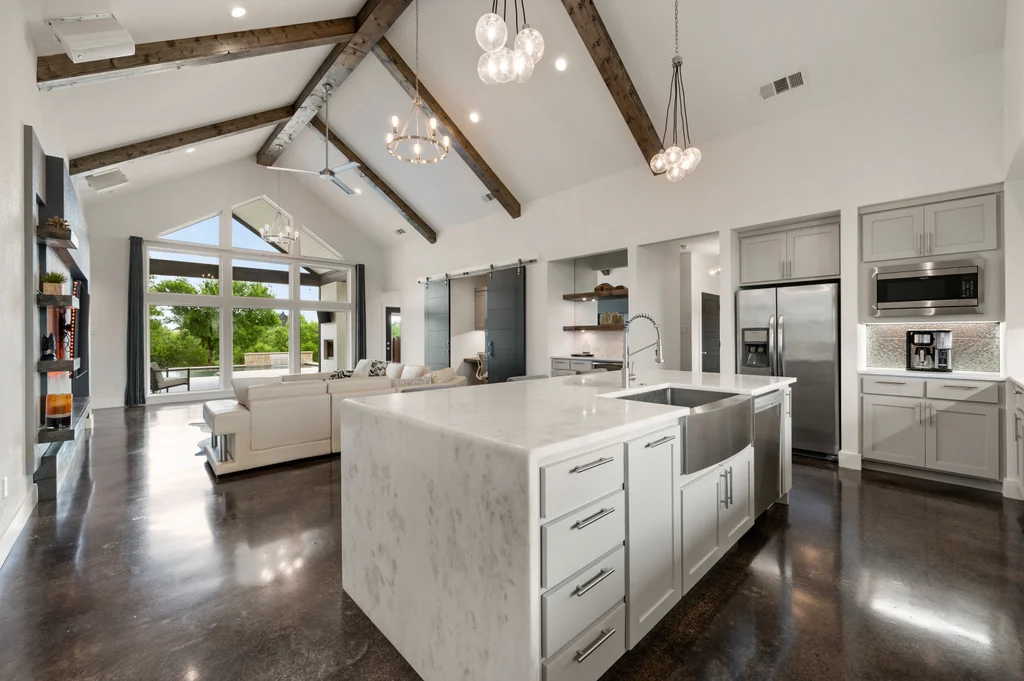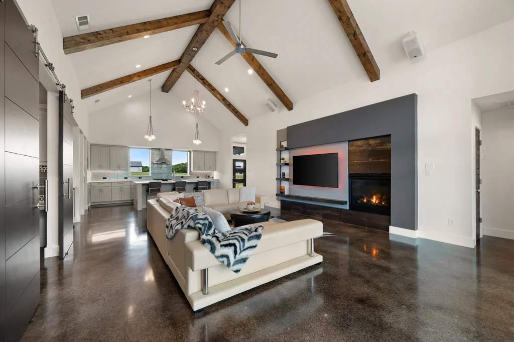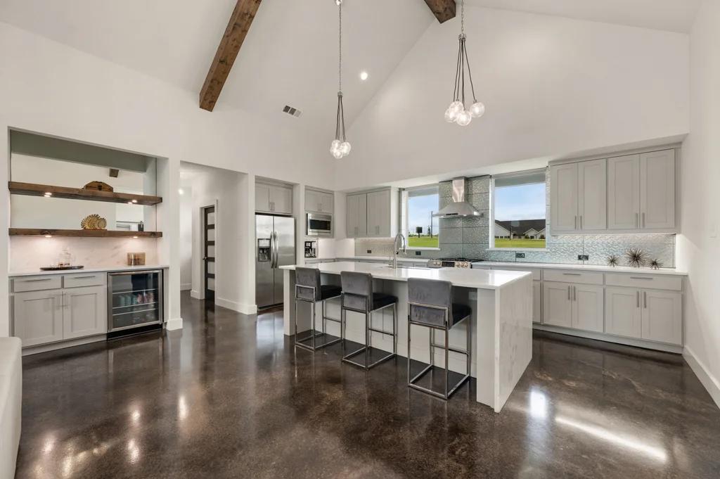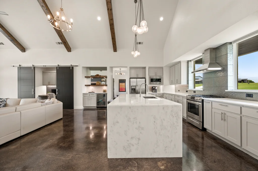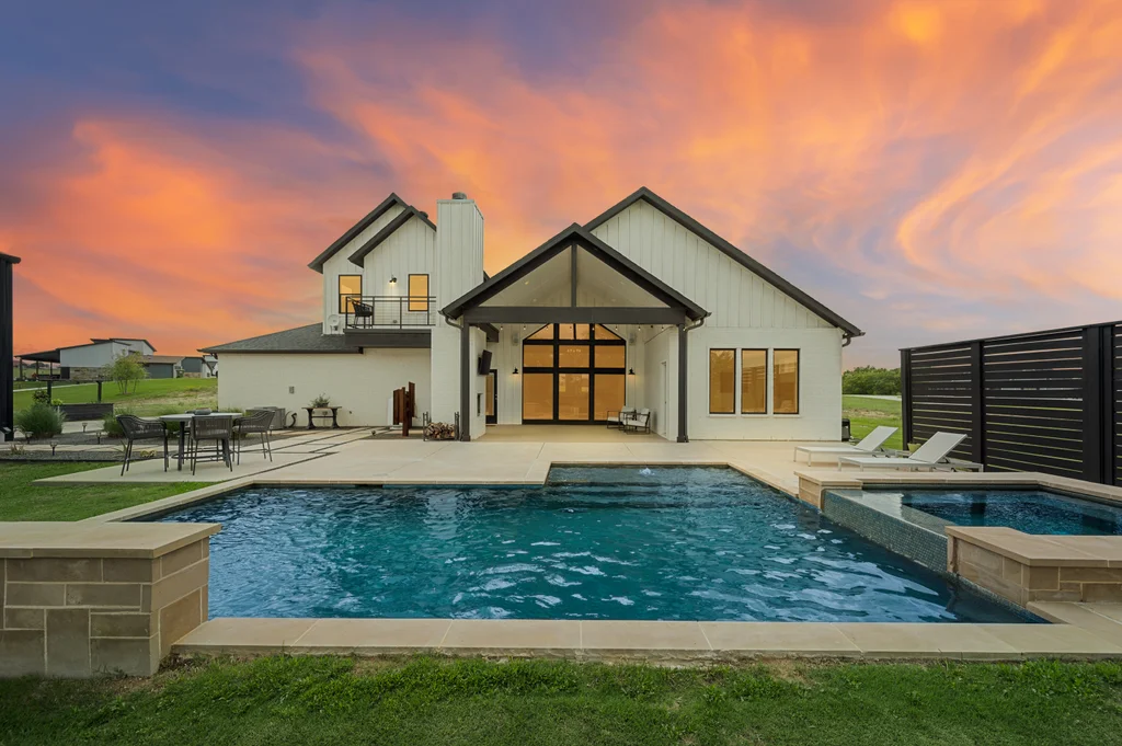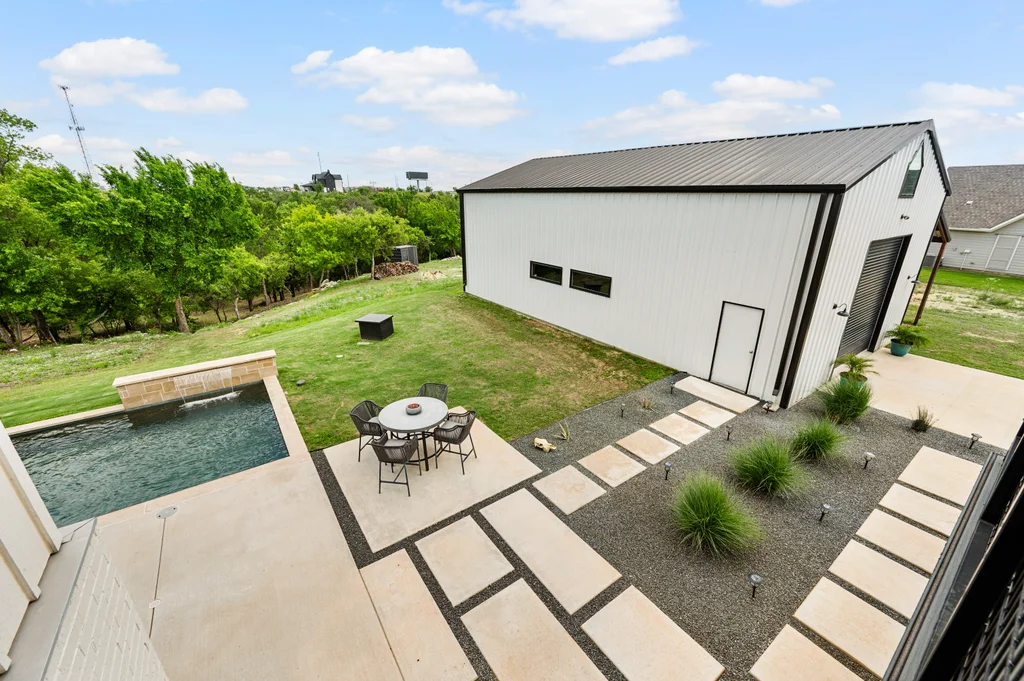 If you’re craving rolling terrain instead of flat, forgettable Texas land, this is your property! A rare mix of elevation & usable back pasture area (est. 4 acres) creates the perfect backdrop for hiking, ATV riding, hunting, or simply roaming beneath towering mature trees. A seasonal creek winds through the lower part of the property, adding character & natural beauty. All this privacy, with easy freeway access to anywhere in DFW! Built in 2020 & on 7.354 acres (6.354 AG EXEMPT for low taxes), this custom home delivers freedom with NO HOA, 2 water wells, 2 propane systems, water softener, & thoughtful floorplan. Inside, rustic sophistication meets modern design w-soaring, wood-beamed ceilings, statement accent walls, designer lighting, custom barn doors, marble countertops & undercabinet lighting create a curated, high-end aesthetic. The kitchen commands attention w-a dramatic waterfall island, stainless farm sink, stainless appliances, custom backsplash, abundant cabinetry & a HUGE walk-in pantry! The expansive family room flows seamlessly from the kitchen! This area also includes an office nook & a sleek dry bar w-undercounter fridge. The downstairs owner’s retreat has 10’ ceilings, private patio access, a spa-inspired ensuite w-6’ soaking tub, dual-entry shower w-dual heads, & a MASSIVE closet w-DIRECT laundry room access! The laundry room continues the luxury w-Quartz counters, a sink, custom cabinetry & undercabinet lighting. Upstairs offers two bedrooms, one currently styled as an open art studio. Seller will convert to an enclosed 3rd bedroom if desired. Step outside to your resort moment: POOL & HOT TUB w-COVERED 14x19 patio & fireplace! BONUS: A covered 6’x25’ front patio! The 40’x50’ INSULATED shop features 220V electric, two 12’x12’ roll-up doors, room for 6+ vehicles & a 10’x50’ lean-to! Plus the home has an oversized 3-car garage! This isn’t just acreage. It’s atmosphere. It’s freedom. It’s Texas done right. Hunting welcome!