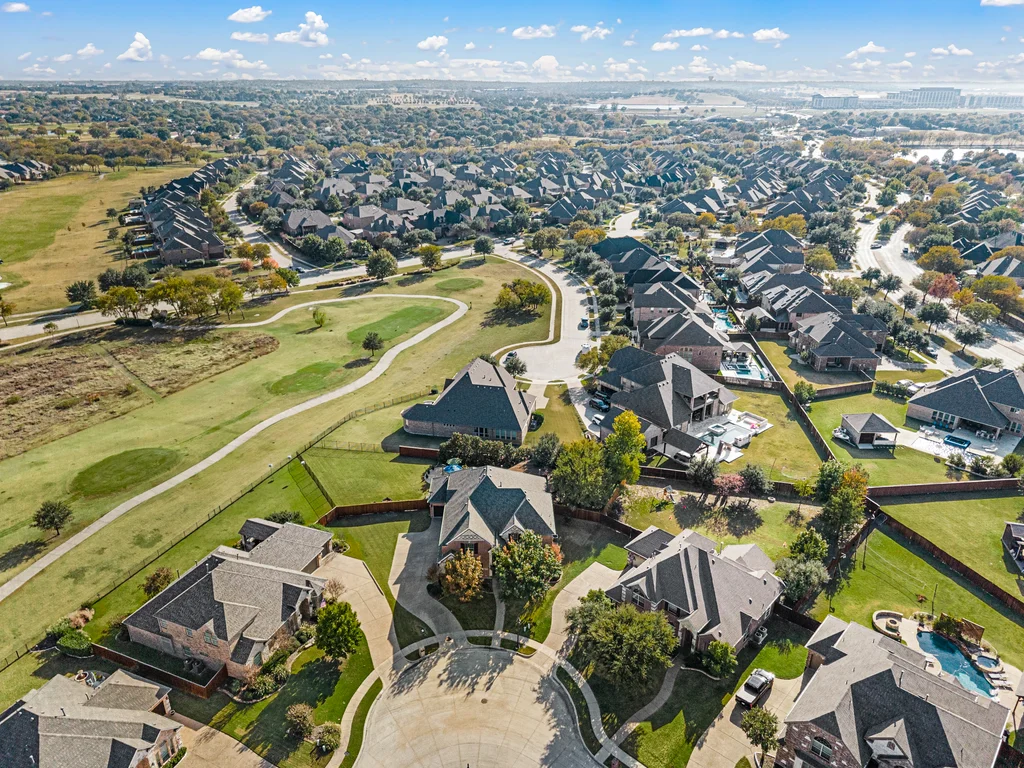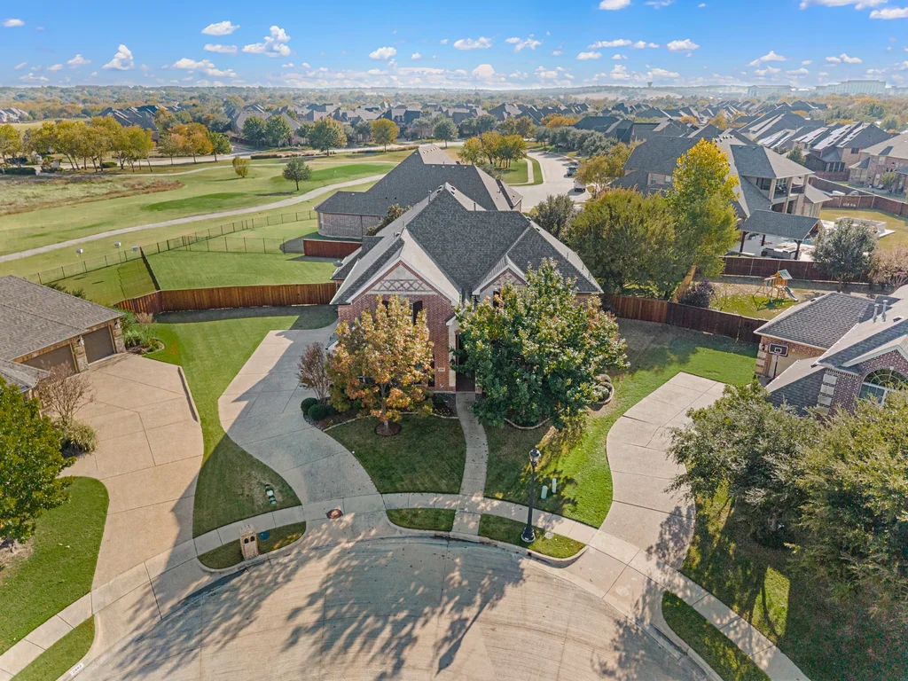 Experience refined Golf Course living in the heart of Trophy Club. Perfectly positioned on an oversized Golf Course lot, this exceptional residence blends privacy, comfort, and resort-style amenities—designed for those who value both luxury and lifestyle. Just 15 miles from DFW Airport and zoned to award-winning Northwest ISD, the home sits in a golf cart–friendly community with access to Lake Grapevine, scenic parks, and miles of walking trails. Inside, a formal living area flows seamlessly into a spacious dining room, ideal for entertaining. A private study with built-in shelving offers a refined workspace. The updated kitchen, featuring double ovens, breakfast bar, walk-in pantry, and premium finishes, opens to an expansive living room for effortless daily living. Wood floors on the first level, new carpet throughout, fresh paint, and a remodeled primary bath with an enlarged frameless shower enhance the home’s modern, move-in-ready appeal. Upstairs, four generous bedrooms, a large game room with sweeping golf course views, and a media room provide space to relax and recharge. Outside, a backyard oasis features a 20×40 freshwater pool, lush landscaping, covered patio with gas fireplace, and a spacious lawn for pets and play. The serene golf course backdrop with direct access combines tranquility and recreation. With its premier location, thoughtful updates, expansive living spaces, and resort-style amenities, this Trophy Club home presents a rare opportunity to experience luxury living at its finest.