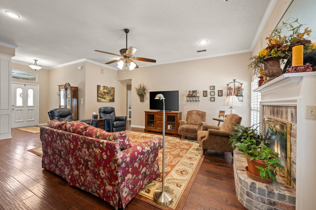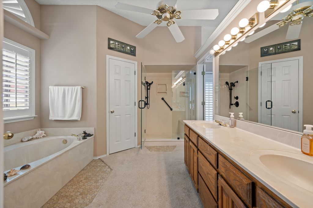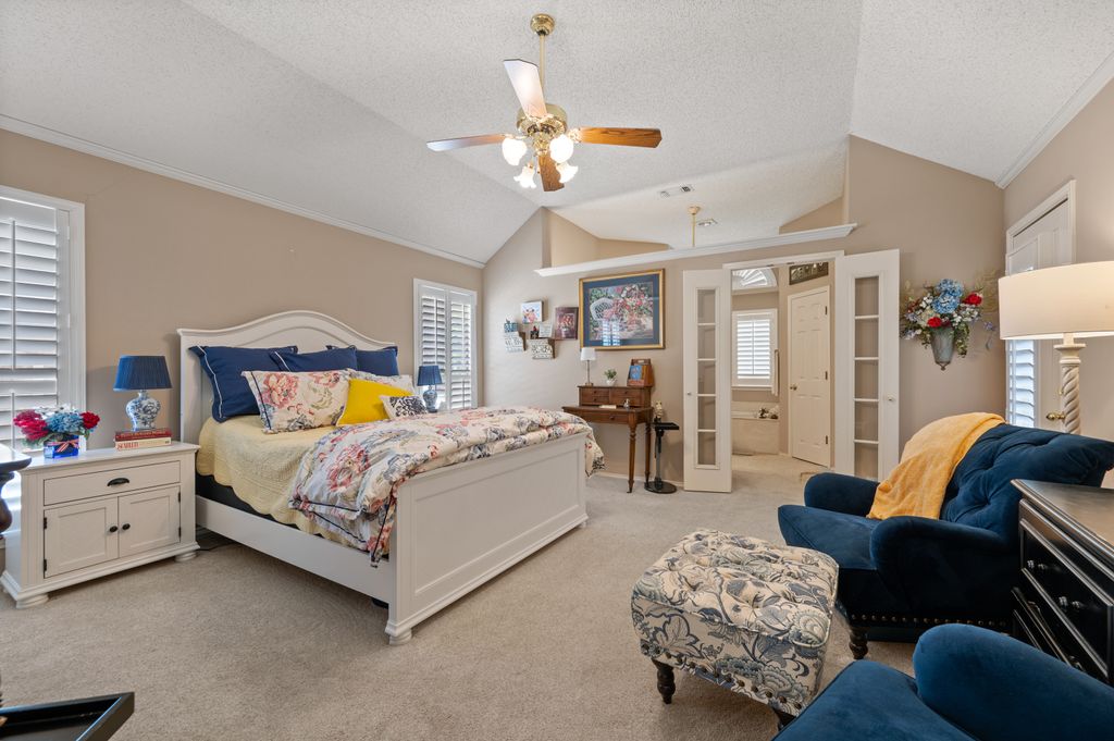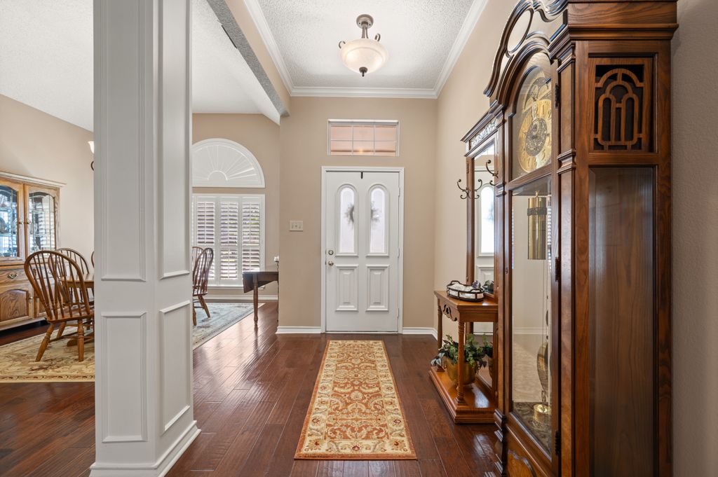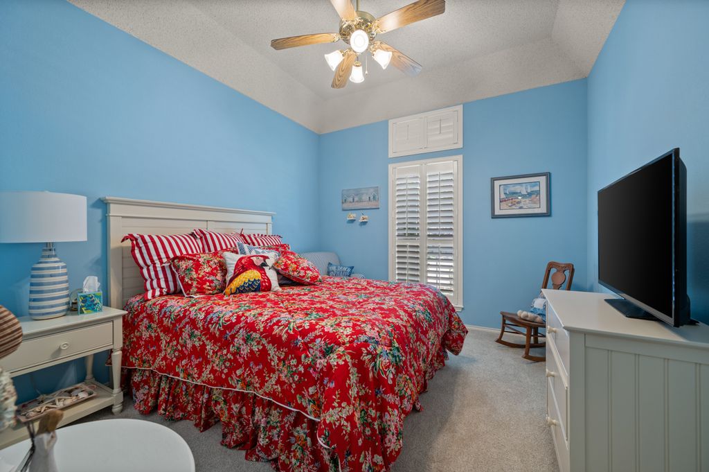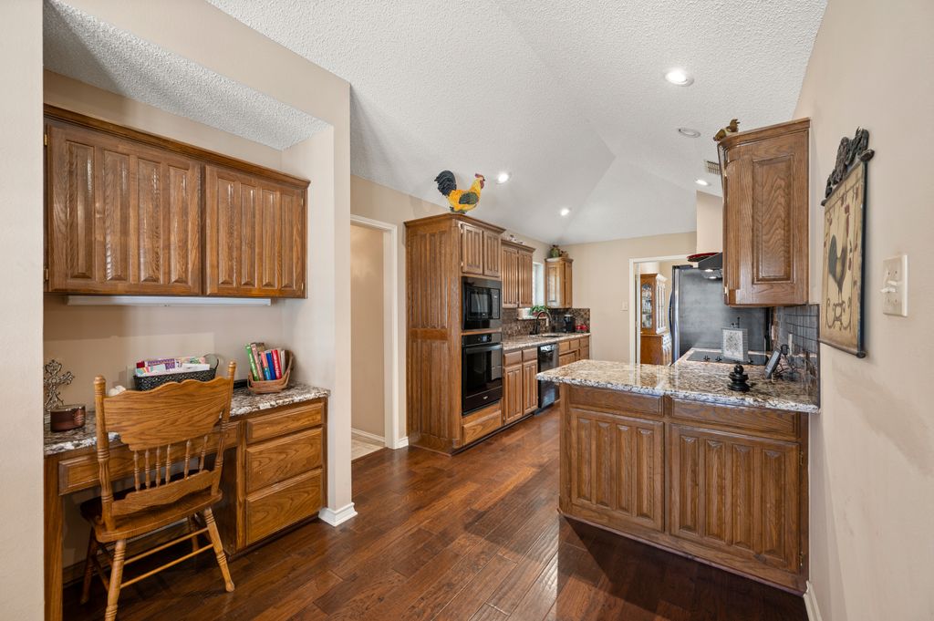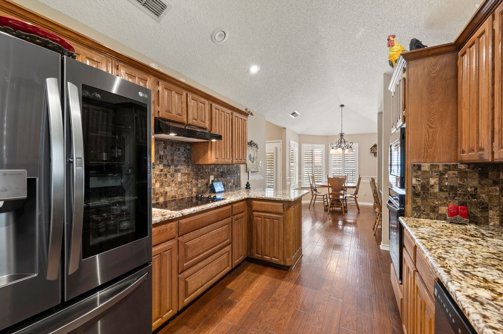 Beautifully maintained and ideally located, this home offers quick access to Iron Horse Golf Course, premier shopping and I-820. If convenience is at the top of your list, this one checks all the boxes! Step inside this 3-bedroom, 2.5-bath gem and enjoy elegant details such as hardwood floors in the main living areas, crown molding, decorative columns, and custom plantation shutters throughout. The well-designed layout flows seamlessly through the living, dining, breakfast, and kitchen areas, perfect for everyday living or entertaining. The kitchen features granite countertops, tile backsplash, solid wood cabinetry, and black-finished appliances, including a built-in oven, microwave and electric cooktop. A charming breakfast nook offers backyard views, while the adjacent built-in desk provides an ideal spot for organizing household tasks, homework or working from home. The spacious family room showcases a brick wood-burning fireplace with glass doors and a wall of windows overlooking the covered patio—perfect for outdoor dining or relaxing in the shade. The rear-entry garage adds both privacy and convenience. The backyard has mature shade trees and a storage shed for extra space. An extended driveway provides ample parking and is perfect for basketball or outdoor activities. Just off the garage entry, you’ll find a well-appointed utility room with built-in cabinetry, tile flooring, a large storage closet or second pantry and a window for natural light. A nearby half-bath adds convenience. The private bedroom wing offers generously sized secondary bedrooms with walk-in closets and a shared hall bath. The primary suite is a true retreat with vaulted ceilings, a cozy sitting area, private patio access, dual walk-in closets, and a luxurious en suite featuring a garden tub, dual sinks, and an upgraded shower with bench and handheld fixture. With timeless finishes, abundant storage, and a location that’s hard to beat, this home is a rare find! Schedule your showing today.