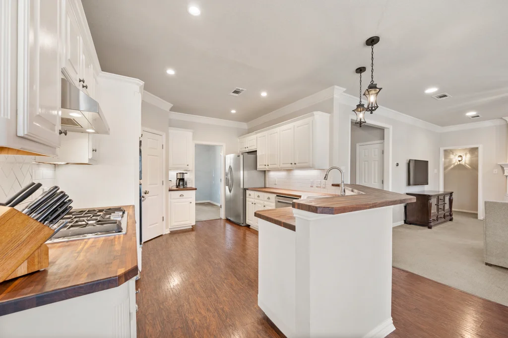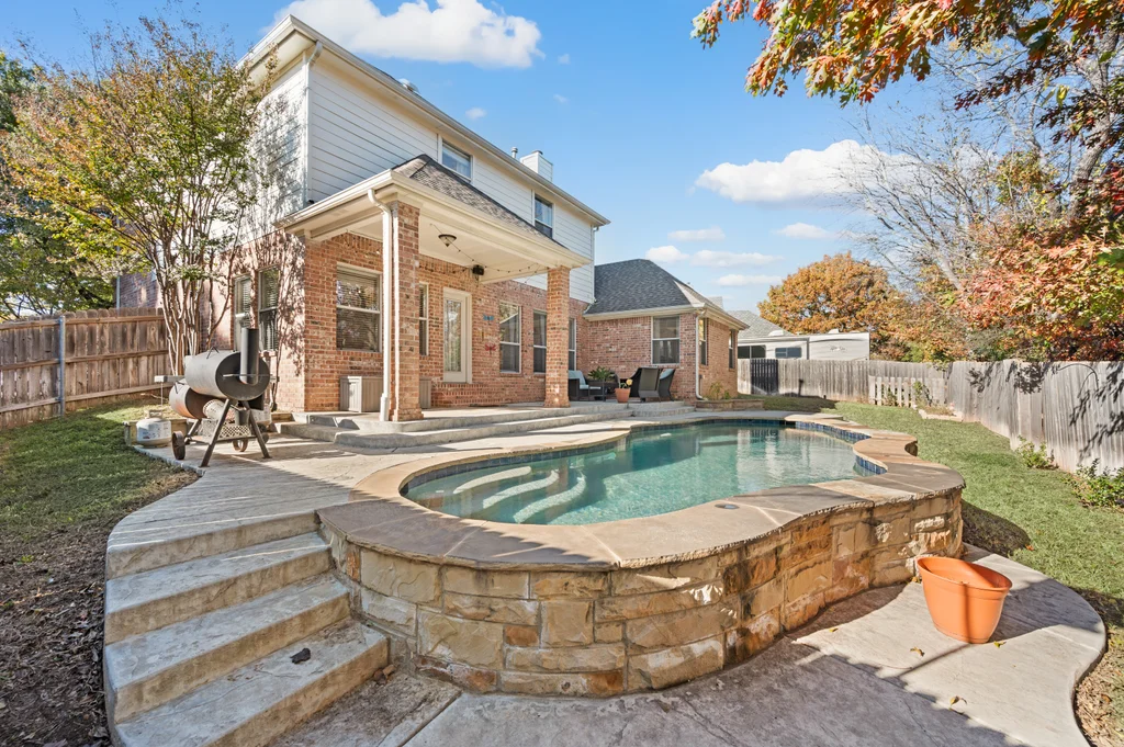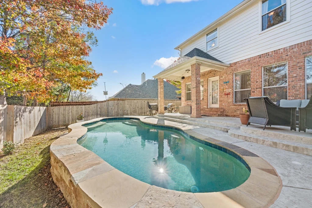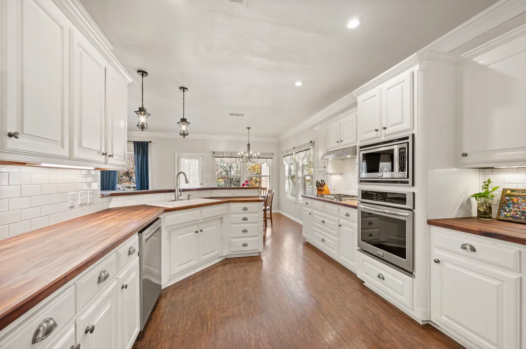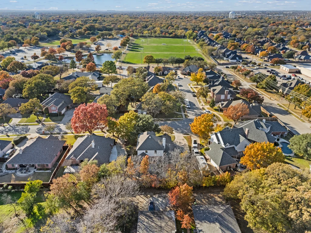 Welcome! Tucked on a quiet cul-de-sac & zoned to a highly sought-after Blue Ribbon elementary school right outside the neighborhood! Pride of ownership & thoughtful design shine throughout. The show-stopping kitchen features a walk-in pantry, rich wood countertops, wraparound breakfast bar, & a HUGE breakfast dining area! Highlights include a stainless-steel appliance package featuring a 30-inch gas 4-burner cooktop w-exterior venting hood, large pots & pan drawers, subway tile backsplash, under-cabinet lighting, a 30-inch convection oven, & a dishwasher with hidden controls & 3 racks inside! Upgraded crown molding flows from the kitchen into the inviting family room with a large, custom tiled fireplace with gas logs. The front formal dining is the flex room that can be used as a dining area if desired, or us it as a home office or a 2nd living area! A wraparound hall closet beneath the stairs offers exceptional storage & doubles as a storm shelter if needed. Updated nickel door hardware and hinges add a polished finish throughout the home. The laundry room is a convenient pass-through to the garage with upper cabinets, & the garage includes a recessed area for a workbench. The large downstairs primary suite is a true retreat with vaulted ceilings, sitting area, and no bedrooms above = QUIET! Enjoy a cedar closet, an oversized walk-in closet with extensive built-ins, & a spa-like ensuite featuring a soaking tub, custom bead board wall, solid surface countertops w-undermount sinks, a custom shower with dual heads, a built-in bench & frameless glass! Upstairs offers three spacious bedrooms & a full bathroom w-dual sinks. Outside, relax or entertain on the 14x8 covered patio, or the 15x8 open patio! Both overlooking a stunning gunnite pool with water features, a deep end & multiple sitting ledges. A HUGE park is DIRECTLY across from this quiet neighborhood featuring 2 fishing ponds, hike/bike trails, loads of grass-field areas, tennis-pickleball court & a playground!