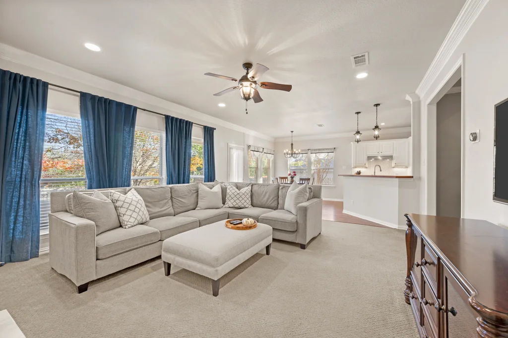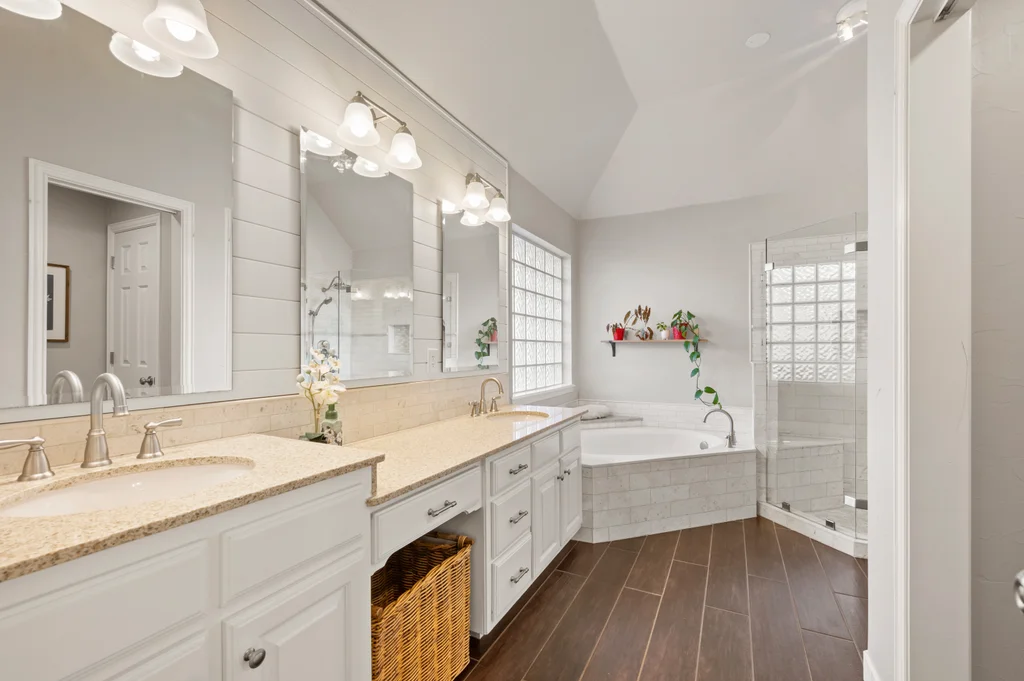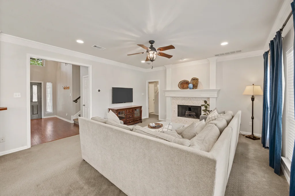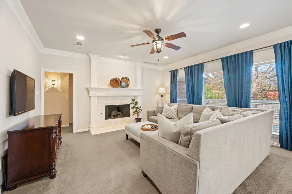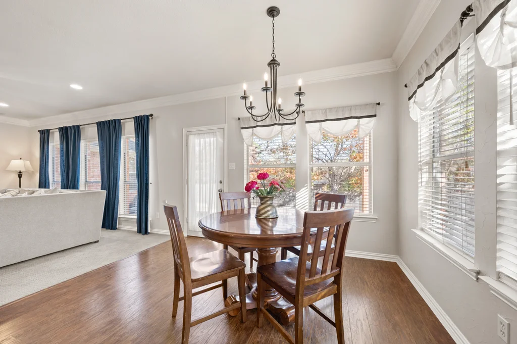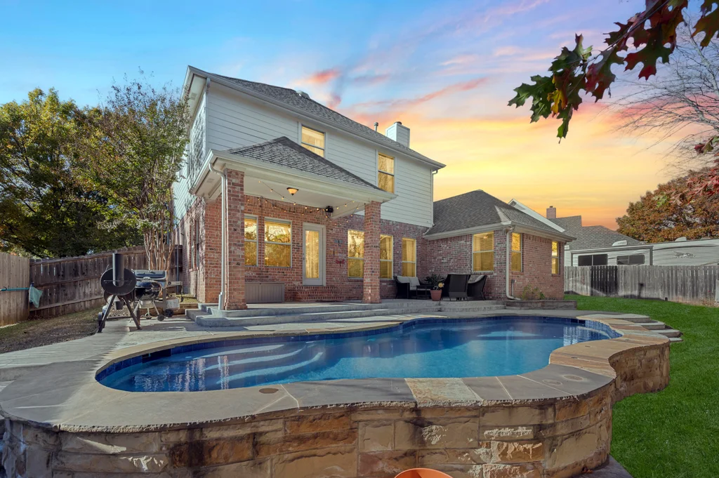 Welcome! Tucked on a quiet cul-de-sac & zoned to a highly sought-after Blue Ribbon elementary school right outside the neighborhood! Pride of ownership & thoughtful design shine throughout. The show-stopping kitchen features a walk-in pantry, rich wood countertops, wraparound breakfast bar, & a HUGE breakfast dining area! Highlights include a stainless-steel appliance package featuring a 30-inch gas 4-burner cooktop w-exterior venting hood, large pots & pan drawers, subway tile backsplash, under-cabinet lighting, a 30-inch convection oven, & a dishwasher with hidden controls & 3 racks inside! Upgraded crown molding flows from the kitchen into the inviting family room with a large, custom tiled fireplace with gas logs. The front formal dining is the flex room that can be used as a dining area if desired, or us it as a home office or a 2nd living area! A wraparound hall closet beneath the stairs offers exceptional storage & doubles as a storm shelter if needed. Updated nickel door hardware and hinges add a polished finish throughout the home. The laundry room is a convenient pass-through to the garage with upper cabinets, & the garage includes a recessed area for a workbench. The large downstairs primary suite is a true retreat with vaulted ceilings, sitting area, and no bedrooms above = QUIET! Enjoy a cedar closet, an oversized walk-in closet with extensive built-ins, & a spa-like ensuite featuring a soaking tub, custom bead board wall, solid surface countertops w-undermount sinks, a custom shower with dual heads, a built-in bench & frameless glass! Upstairs offers three spacious bedrooms & a full bathroom w-dual sinks. Outside, relax or entertain on the 14x8 covered patio, or the 15x8 open patio! Both overlooking a stunning gunnite pool with water features, a deep end & multiple sitting ledges. A HUGE park is DIRECTLY across from this quiet neighborhood featuring 2 fishing ponds, hike/bike trails, loads of grass-field areas, tennis-pickleball court & a playground!