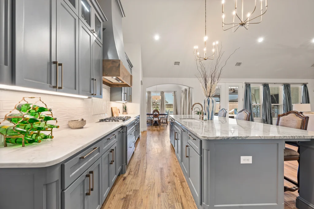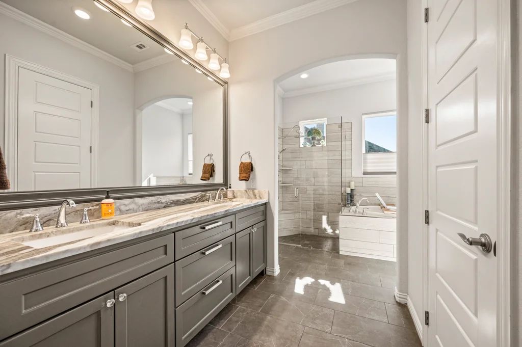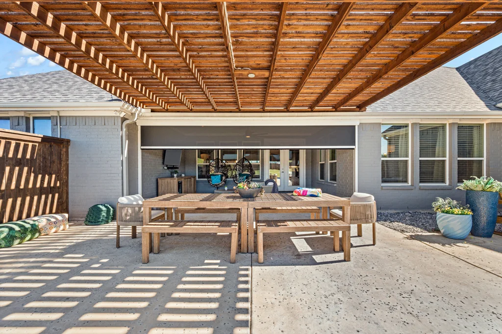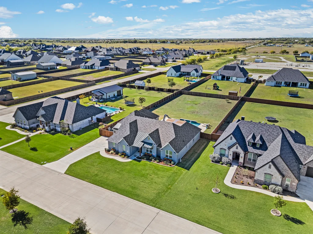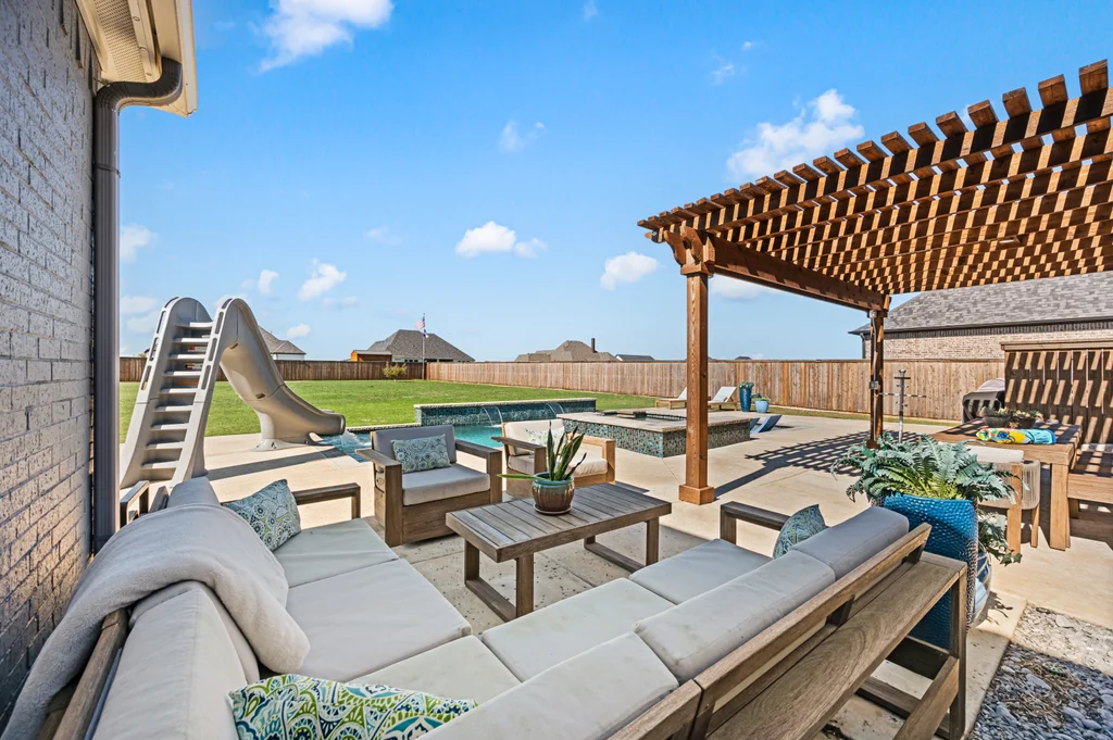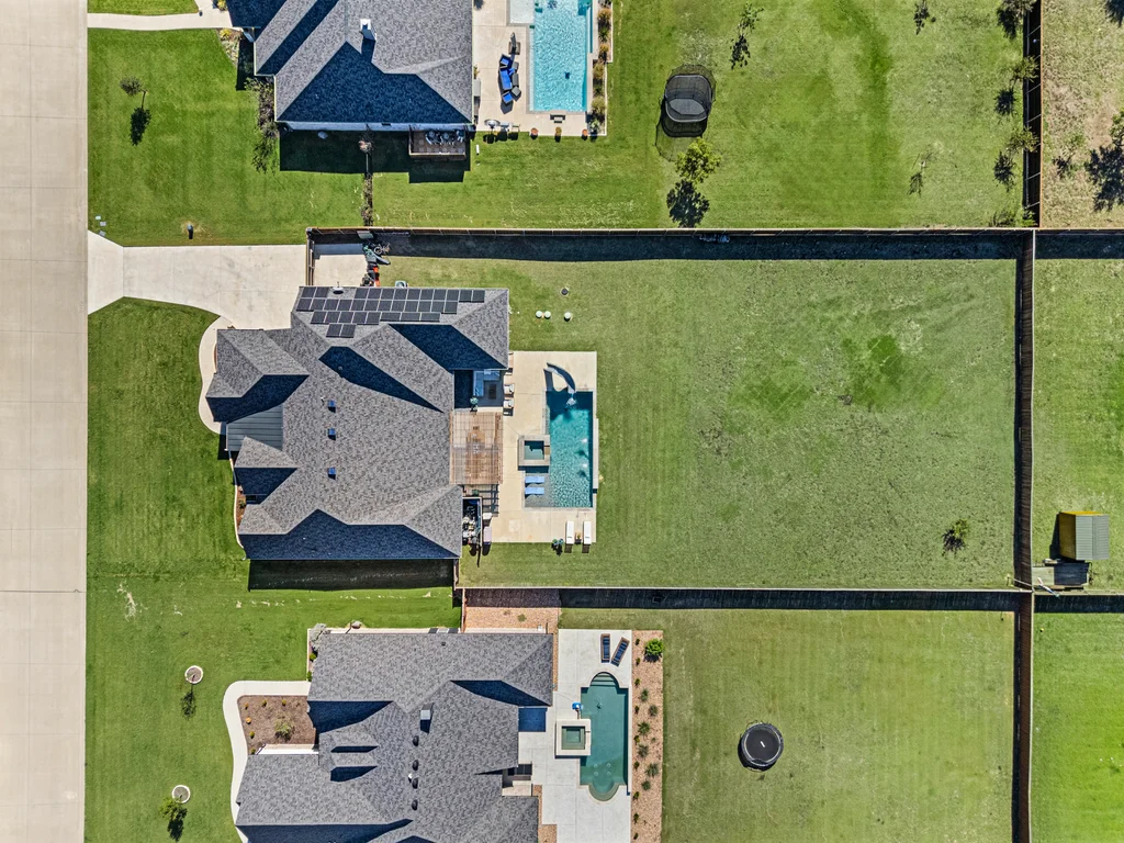 The chef’s kitchen is a host’s dream-featuring a 5x10 expansive island, double ovens, 5-burner gas cooktop, and plenty of counter and cabinet space for both everyday meals and holiday entertaining. Tucked privately at the back of the home, the primary retreat offers serenity, with barn door, stacked tray ceiling, frameless shower, and a deep Aquatic soaking tub that invites you to unwind in style. Step outside to your private backyard oasis with a heated sparkling saltwater pool and spa, water feature & slide, and three relaxing sitting areas, including a motorized patio screen, and complete with mounted infrared heaters for those chilly nights. You'll love soaking in the breathtaking sunset views from the patio as the day unwinds. Additional highlights include: Plantation shutters, mudroom and utility with extra cabinetry & dual folding counters, 5.5” baseboards throughout, arched doorways & updated fixtures, partial board-on-board fencing, Tesla charger in the 3rd garage, and Jellyfish lighting that wraps around the entire home for year-round ambiance and seasonal fun. No need to worry about Texas heat or electric bills-this home comes with PAID-OFF Solar Panels for incredible efficiency and savings. And even better… there are NO city taxes! This home truly has it all! Book a showing at your own risk- you’ll fall in LOVE!