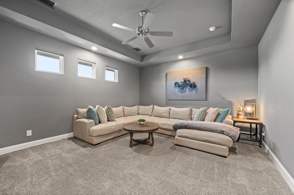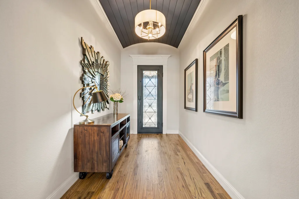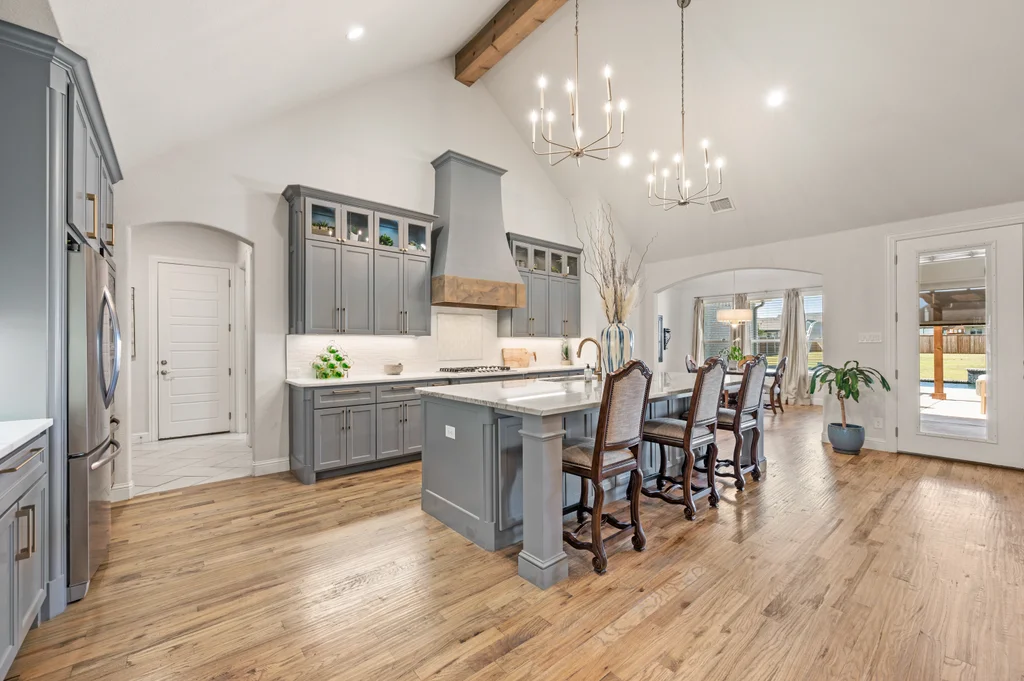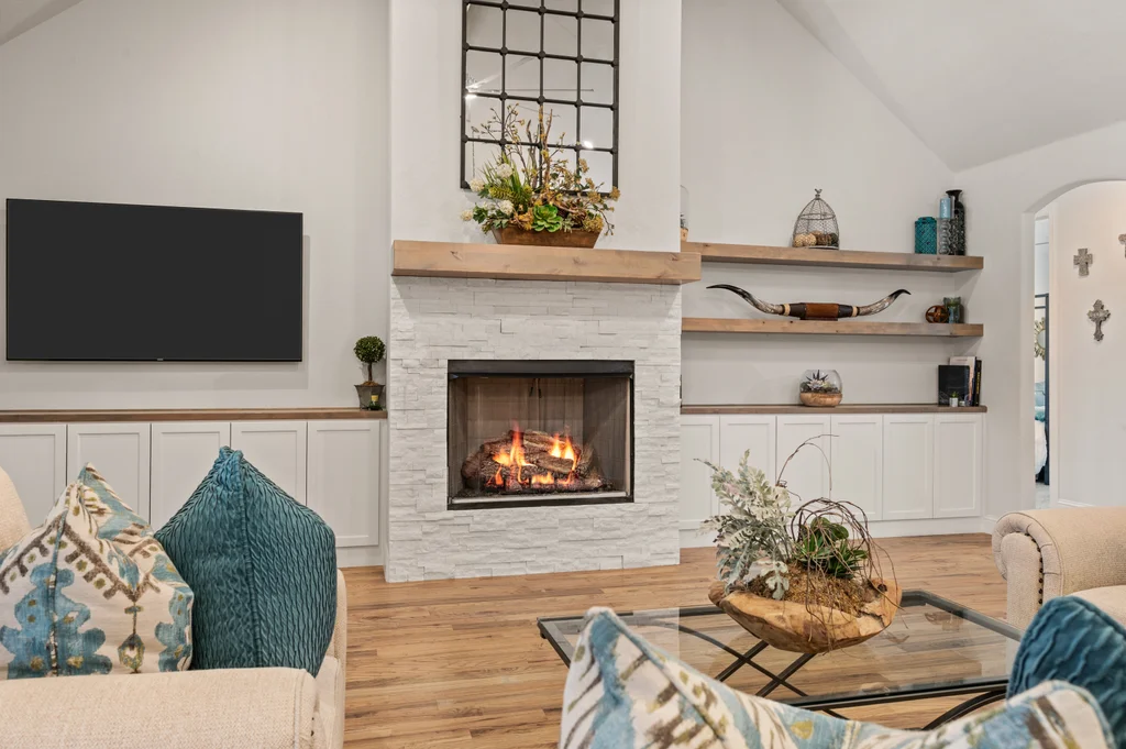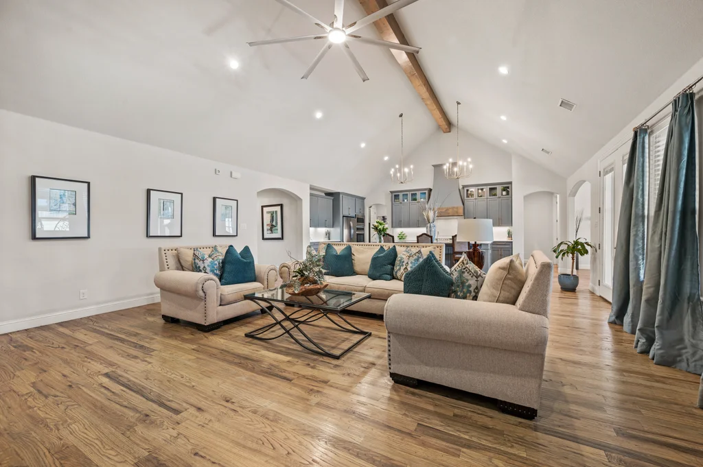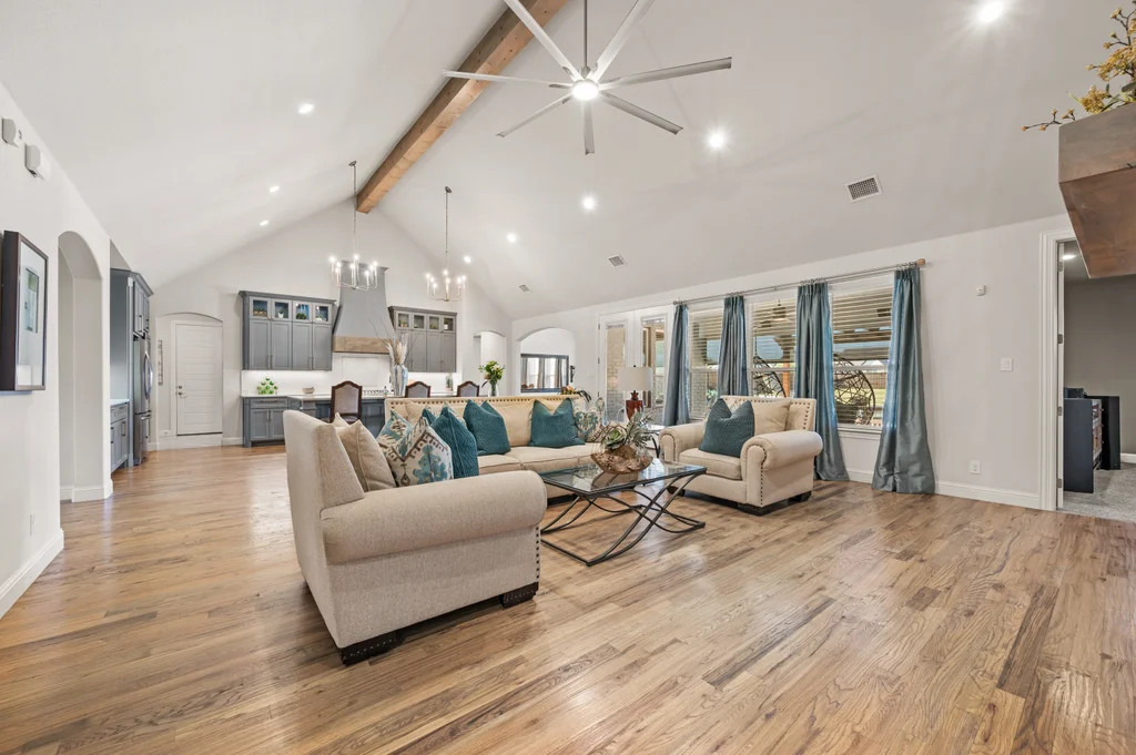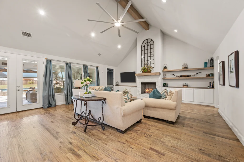 Like NEW, this meticulously maintained custom single-story home sits on over half an acre and checks every box! Thoughtfully designed with 4 bedrooms, 3 full baths, a flex room, formal dining, and a spacious 3-car garage, this home blends luxury, comfort, and functionality. Step inside to updates galore! You’re greeted at the entry with a solid luxury iron front door and a custom contrasting barrel-vaulted ceiling accented by designer lighting. The seamless flow throughout the home is perfect for family gatherings and entertaining. The family room steals the show with 17’ beamed vaulted ceilings, a massive 96” Milisak industrial fan, hand-scraped hardwoods, and a stone gas-log fireplace with extra built-in shelving and storage.